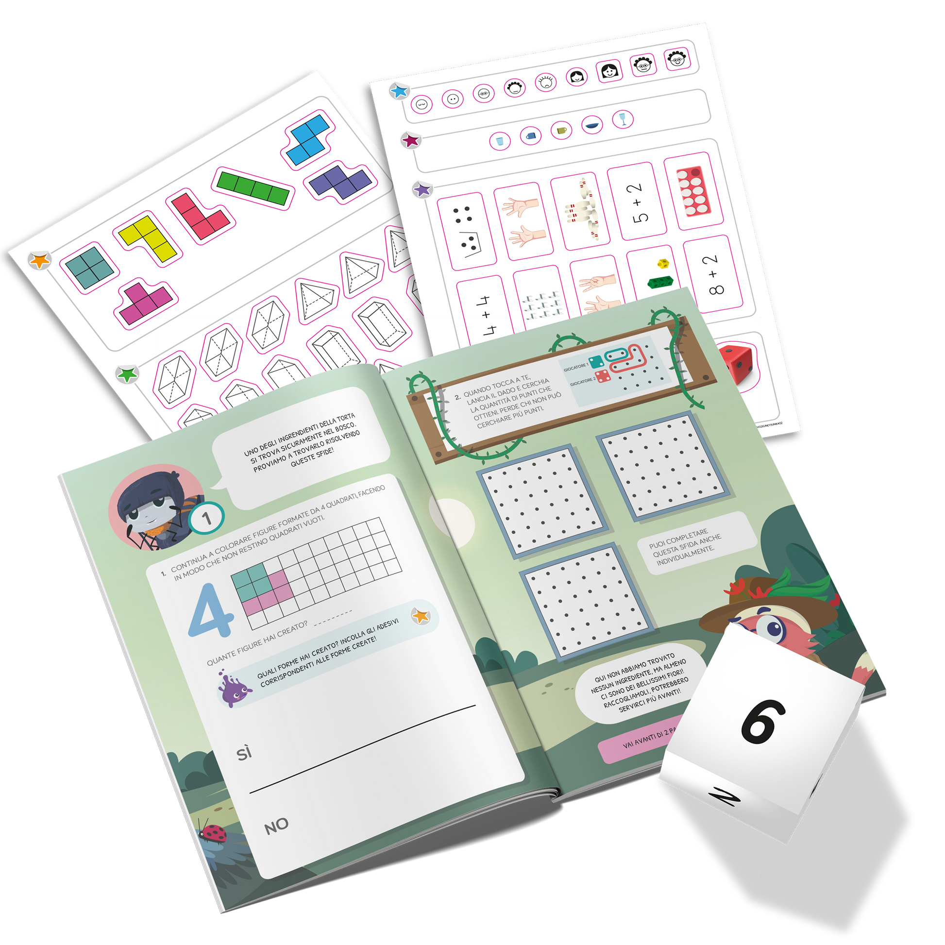 - Due pagine di adesivi e un dado vi aiuteranno a risolvere alcune sfide.