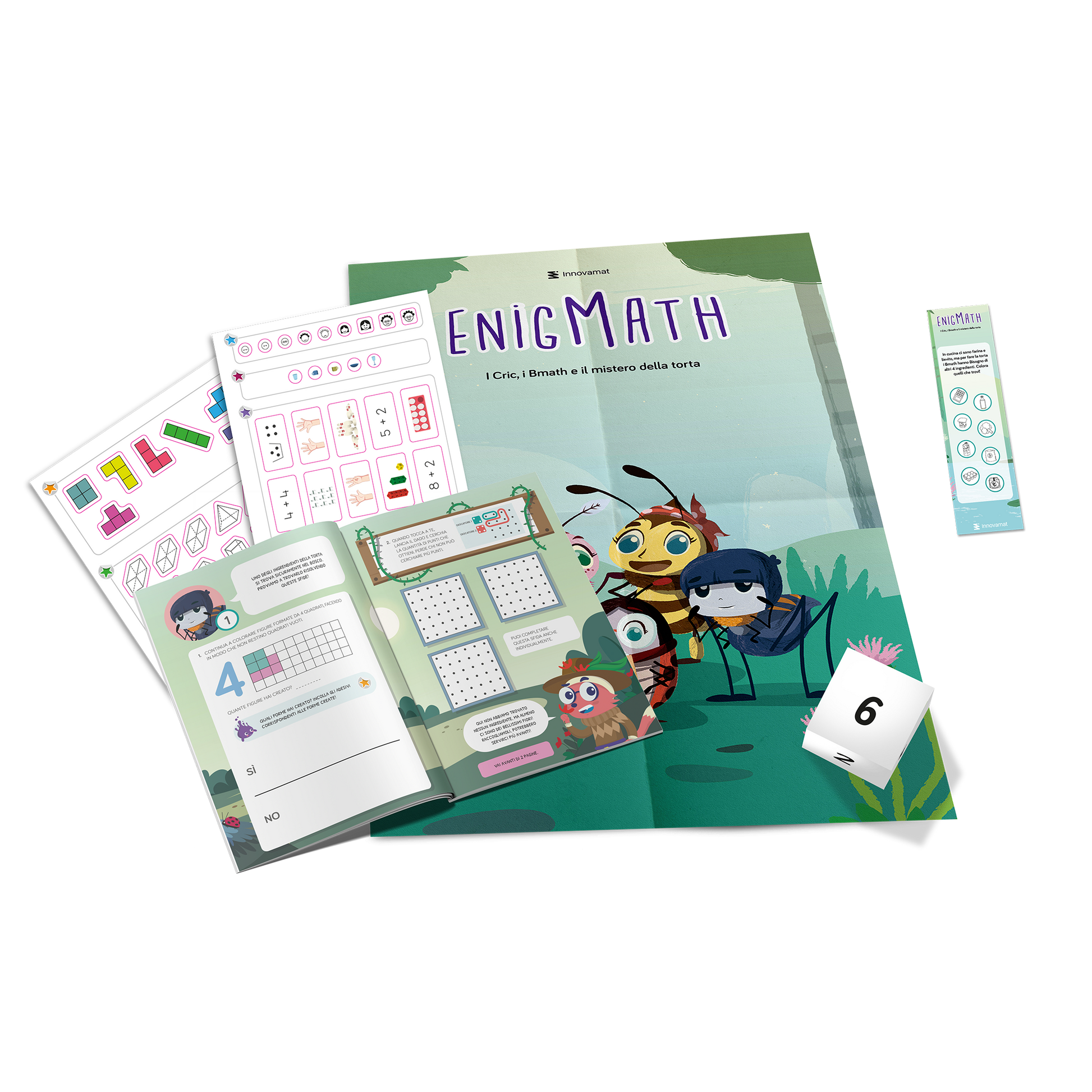 Nel quaderno Enigmath di Innovamat, troverete sfide matematiche con contenuti per l'infanzia 5. Più di 40 pagine di attività per fare domande, scoprire e andare oltre!